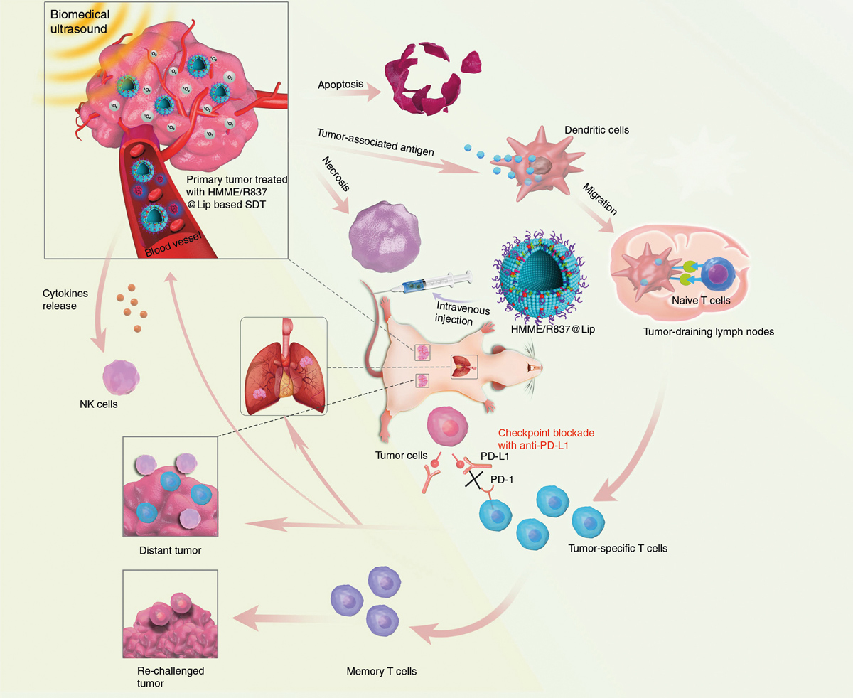 체크포인트 차단 및 나노소노증감제 기반 비침습적 음향역학 치료 병용법을 통한 마우스 종양 성장 및 전이 억제